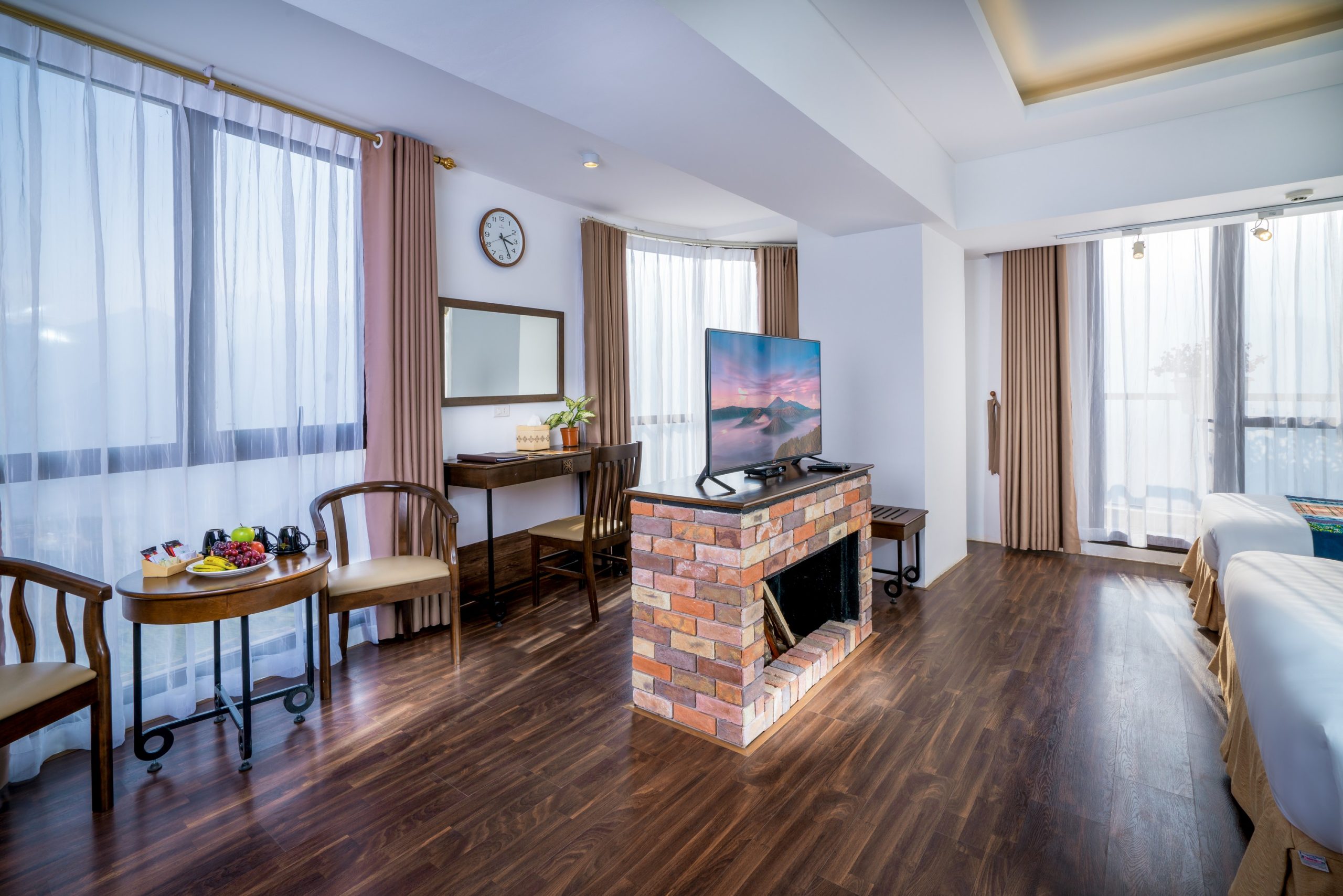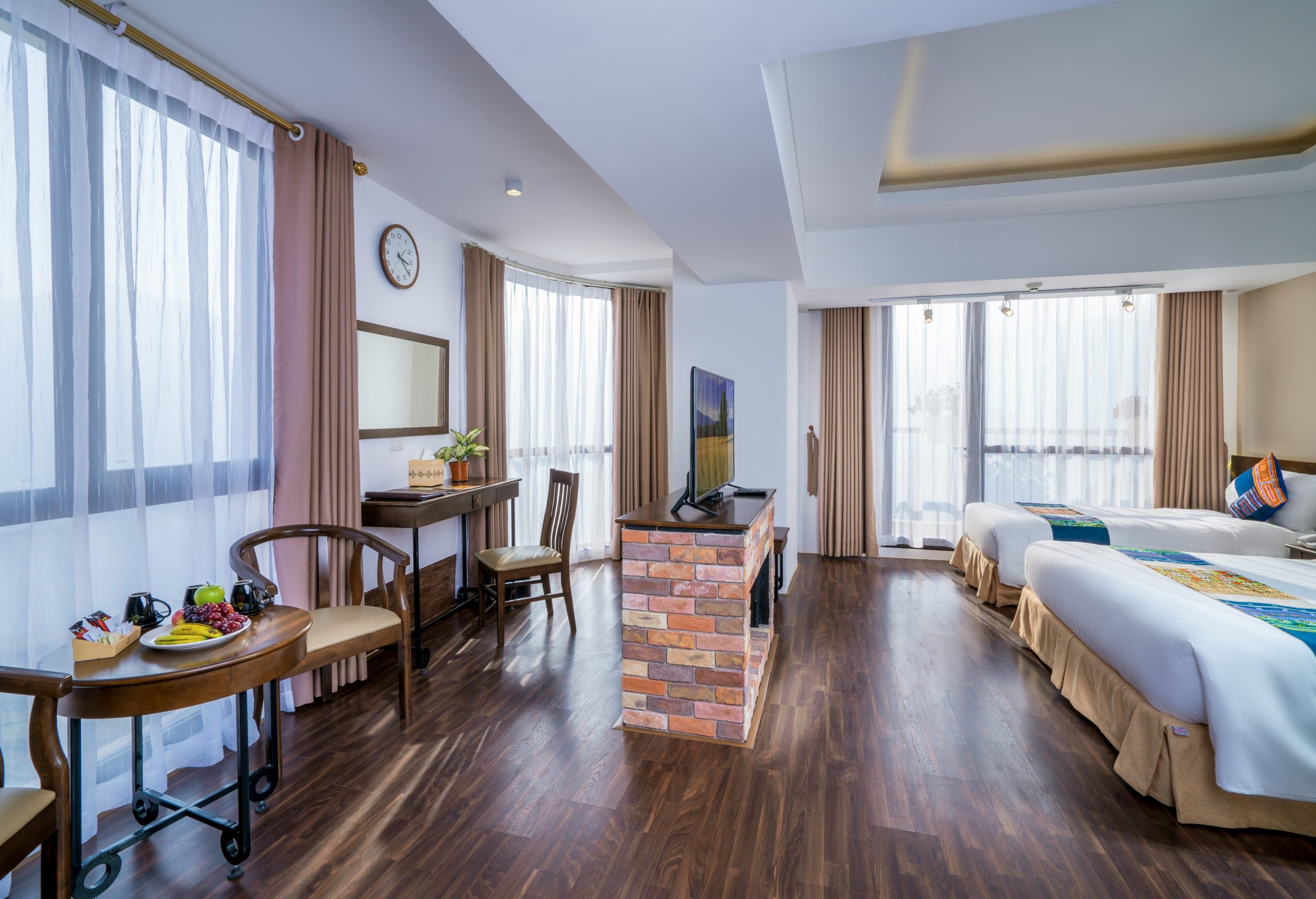 Phòng EVV hay còn gọi là Executive Family là lựa chọn độc đáo và sáng tạo cho du khách muốn khám phá Sapa theo cách của riêng mình. Phòng có diện tích 42 m², được trang bị đầy đủ tiện nghi như giường đôi, tivi LCD, minibar, bàn làm việc, két sắt và phòng tắm riêng. Phòng có ban công nhỏ hướng ra thành phố, cho bạn cảm giác sôi động và năng động. Phòng EVV còn có ưu điểm là có thể đặt trực tuyến qua website của khách sạn, giúp bạn tiết kiệm thời gian và chi phí