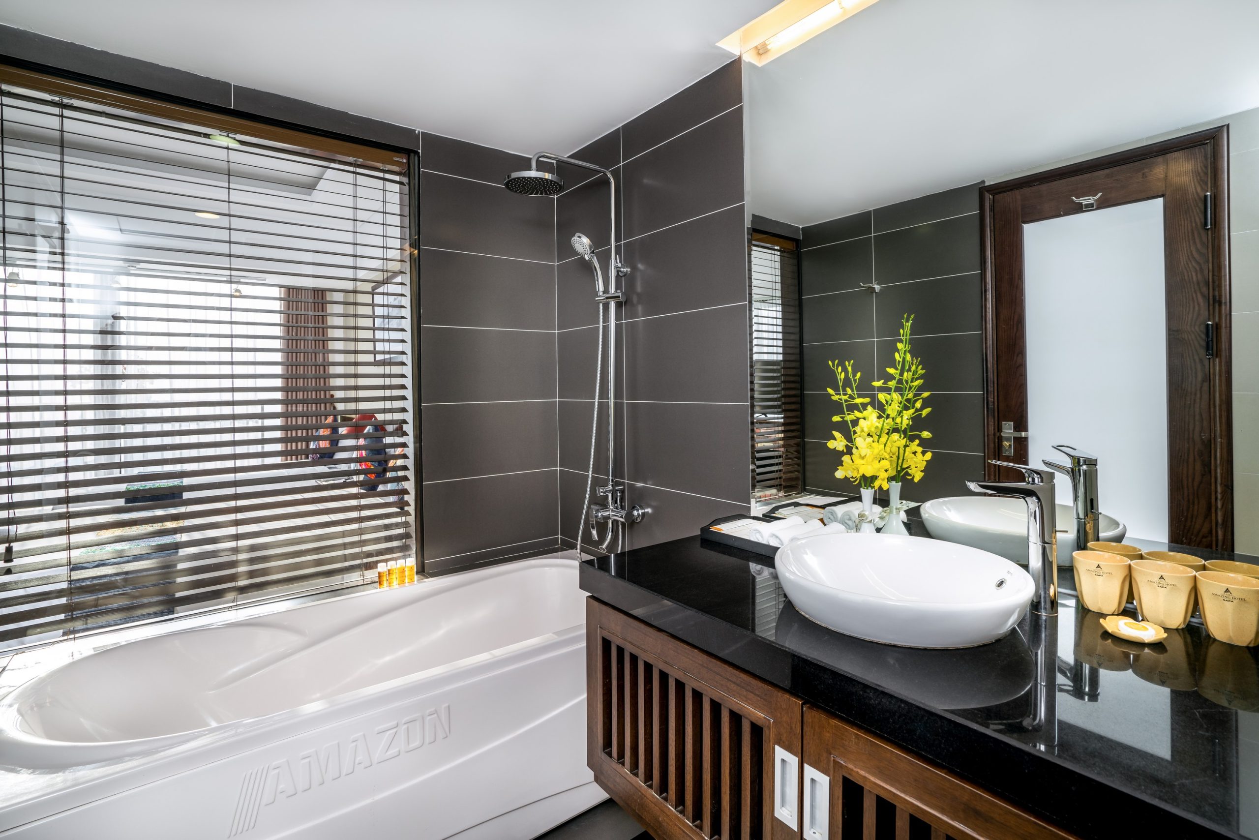 - Máy sấy tóc, áo choàng tắm, dép đi trong phòng